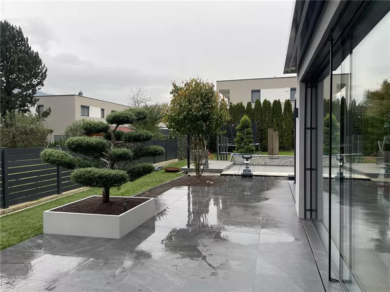 Zusätzlich bieten wir eine große Auswahl an Natursteinplatten für Terrassen oder Trittplattenwege im Garten.