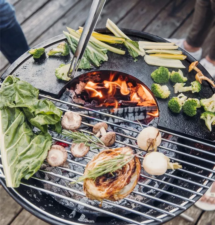 Dabei bietet die BOWL in der Waagerechten ausreichend Platz für Planchas und Grillrosteinsätze für jeden Geschmack. Nach dem Grillen kann sie sogar geneigt werden, um die Flammen vor Wind zu schützen und die Wärme optimal zu reflektieren. Und sollte mal kein Feuer brennen, verwandelt sie sich zu einem eleganten Beistelltisch. Ein wahres Multitalent für gemütliche Abende im Freien.
