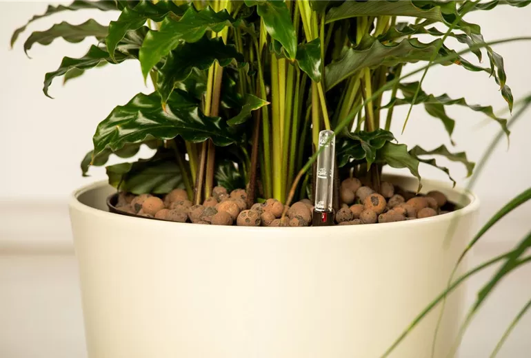 Wer also keine Zeit zum regelmäßigen Gießen hat, weiß seine Hydrokultur-Pflanzen mit einer automatischen Bewässerung jederzeit bestens versorgt.