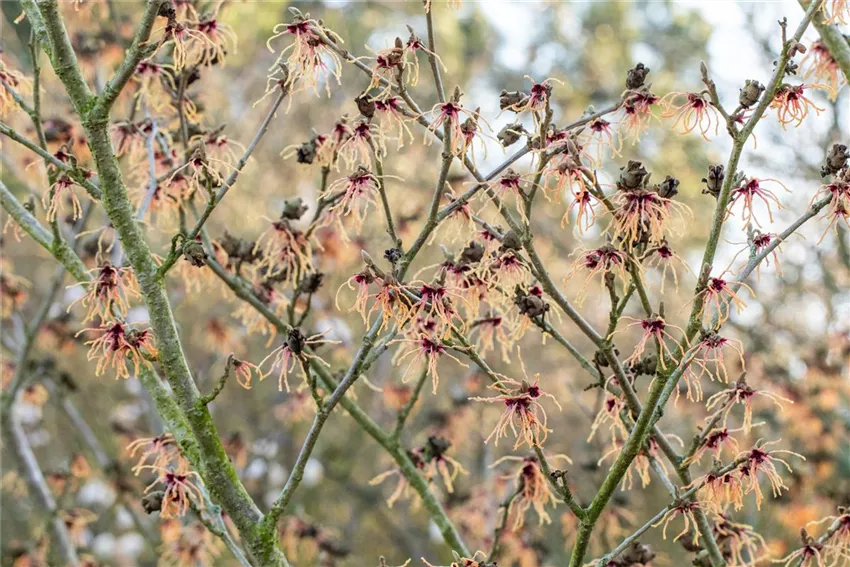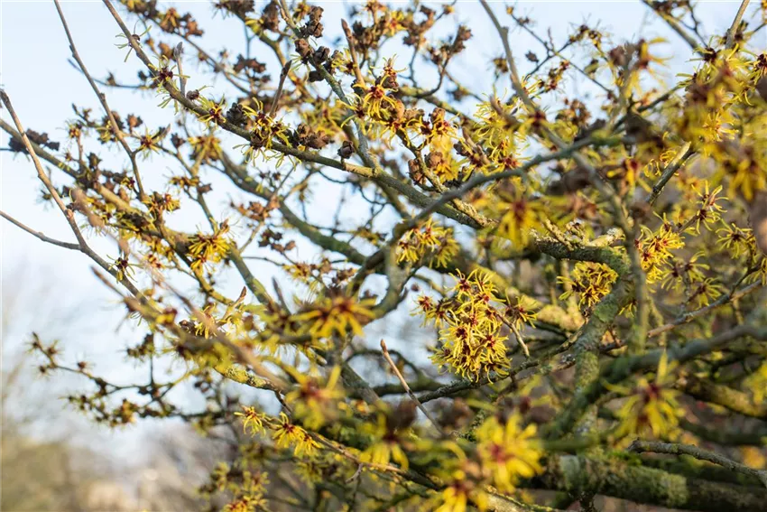 Hamamelis x intermedia 'Primavera' Die Zaubernuss ist, geschickt ins Gartenkonzept integriert, ein echter Hingucker. Kein Wunder, denn die besonderen Blüten bringen Farbe in den Winter. Wenn der meist trist und grau ist, kommen die farbenfrohen Blüten ins Spiel, die dem Winter eine ganz andere Stimmung verleihen. Fast ein bisschen magisch, wer hätte es gedacht.