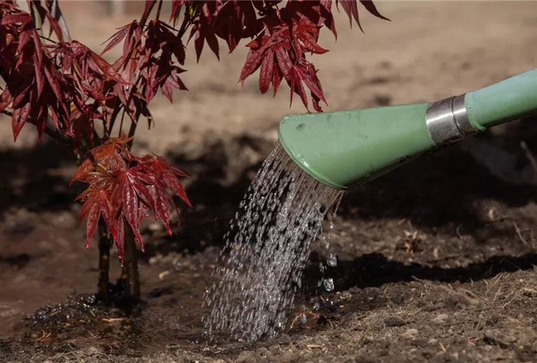 Auch wenn es kalt ist, brauchen Pflanzen Wasser, um zu wachsen. Auch, wenn die Wachstumsphase im Winter eingestellt ist, brauchen vor allem immergrüne Pflanzen im Winter ein bisschen mehr Aufmerksamkeit. Denn bei der Gartenarbeit im Winter kann es auch sein, dass zusätzlich gewässert werden muss, wenn der Winter besonders trocken ist. Immergrüne Pflanzen verdunsten Wasser über ihre Blätter – auch im Winter. Ist der Boden gefroren, können sie kein neues Wasser aus der Erde ziehen und vertrocknen. Daher sollte man an frostfreien und milden Tagen mit zusätzlichem Wasser nachhelfen und die immergrünen Pflanzen bei der Gartenarbeit im Winter zusätzlich wässern. Auch Kübelpflanzen brauchen zusätzliches Wasser, wenn es nicht genug Regen gibt. Denn auch im Winter, gerade bei der Wintersonne, kann die Erde austrocken. Wir Gartenfreunde kennen das, wenn wir im Winter die Sonne genießen und denken: Die wärmt ja ganz schön! Das tut sie und damit verdunstet auch im Winter Wasser aus der Erde. Daher sollte man die Pflanzen im Garten auch im Winter regelmäßig kontrollieren und im Auge behalten, damit sie nicht vertrocknen. Dann gelingt der Start in den Frühling problemlos und ohne Durststrecken.