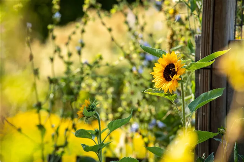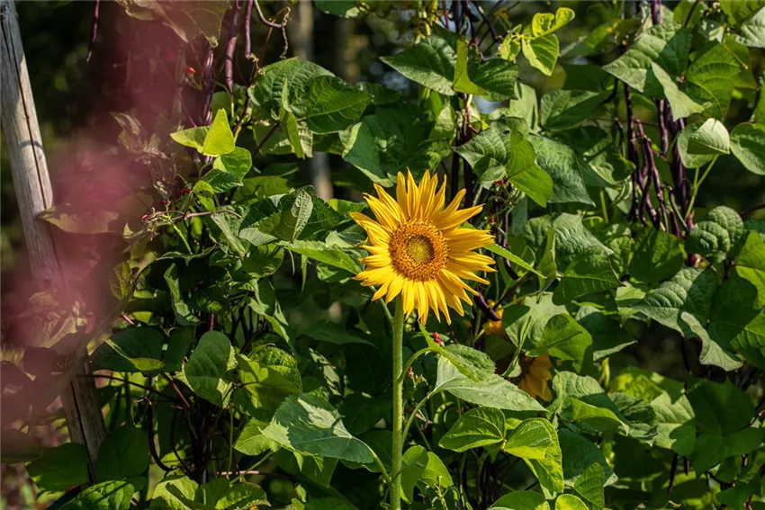 Helianthus annuus Die perfekten Nachbarn für Sonnenblumen sollten natürlich gleiche oder zumindest ähnliche Ansprüche an den Standort und Boden haben. Das bedeutet: Sonne satt und viele Nährstoffe. Wie gut, dass es viele Sommerstauden gibt, die die Sonne regelrecht anbeten und sich über die wärmenden Strahlen freuen. So sind Sonnenhut, Sonnenbraut, Studentenblume und Löwenmäulchen die perfekten Nachbarn. Letztere öffnen ihre Blüten übrigens nur in der Sonne. Aber auch Dahlien sind beliebte Nachbarn für Sonnenblumen. Mädchenauge und Kapkörbchen liefern ebenfalls wichtige Nahrung für Insekten und Schmuckkörbchen und Herbst-Anemone machen neben den großen Blüten der Sonnenblumen eine gute Figur. Im sonnigen und sommerlichen Staudenbeet dürfen diese Kombinationen also auf keinen Fall fehlen!