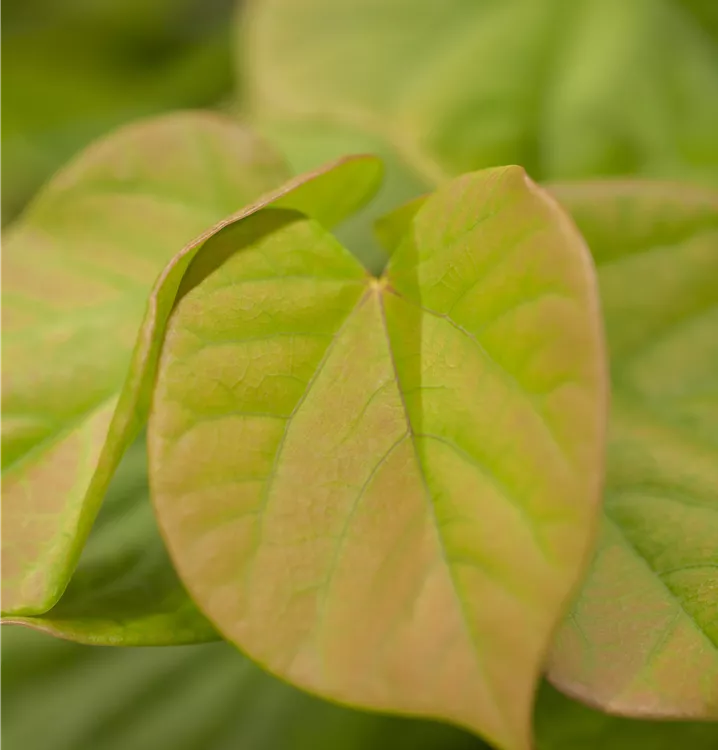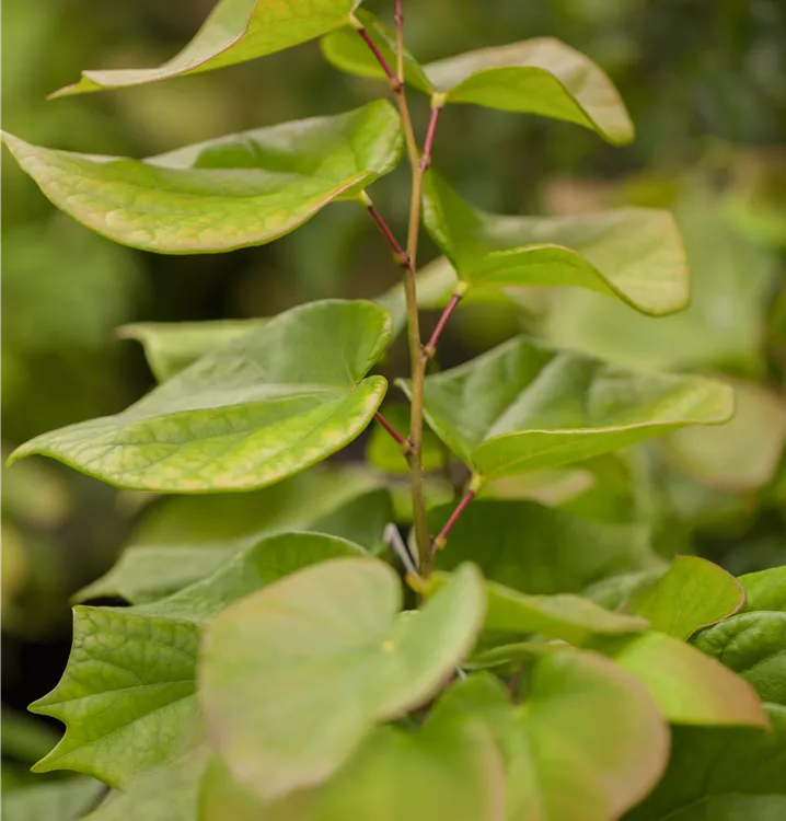 Die sommergrünen Blätter des Judasbaums 'Avondale' sind dunkelgrün, herzförmig. Judasbaum 'Avondale' zeigt sich leuchtend goldgelb im Herbst.