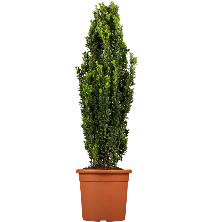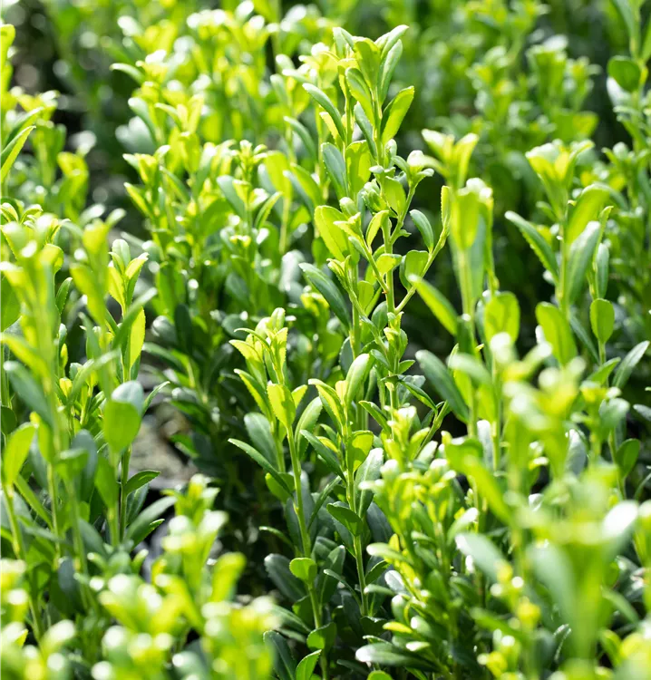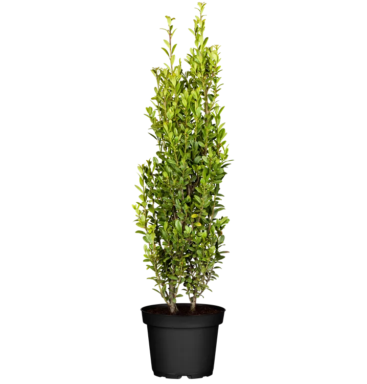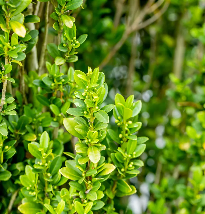 Der Säulen-Berg-Ilex 'Fastigiata' (Ilex crenata) ist ein säulenförmiger Strauch mit dekorativen, schwarzen Früchten, die sehr lange haften. Diesen voraus bringt er von Mai bis Juni cremeweiße Blüten hervor. Zudem trägt der Säulen-Berg-Ilex 'Fastigiata', rundliche, mittelgrüne Blätter. An einem sonnigen bis halbschattigen Standort mit durchlässigem, lockerem, schwachsaurem Boden erreicht er gewöhnlich eine Höhe von ca. 2 m und wird ca. 60 cm breit.