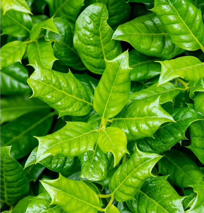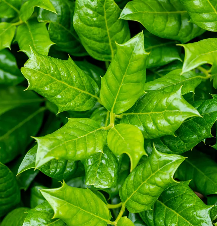 Die immergrünen Blätter der Stechpalme sind dunkelgrün, eiförmig.