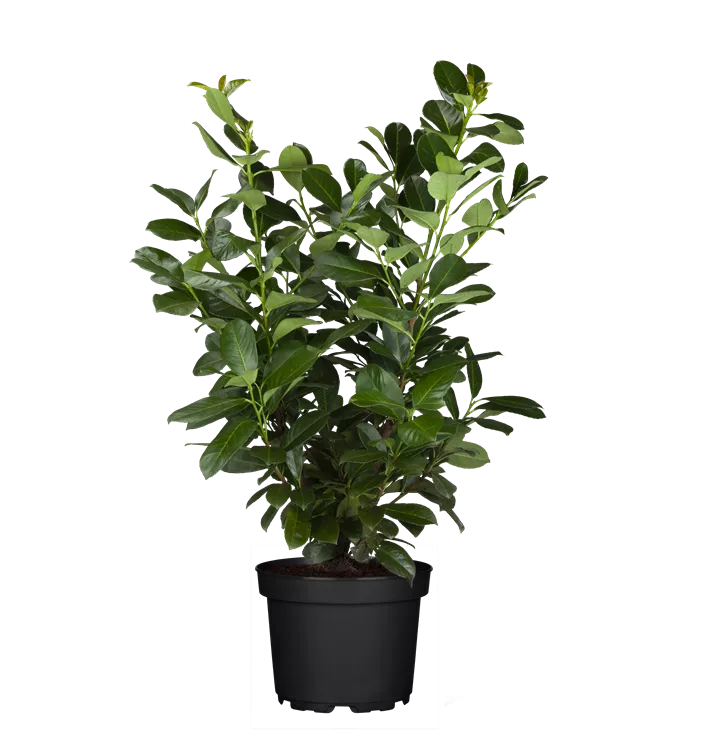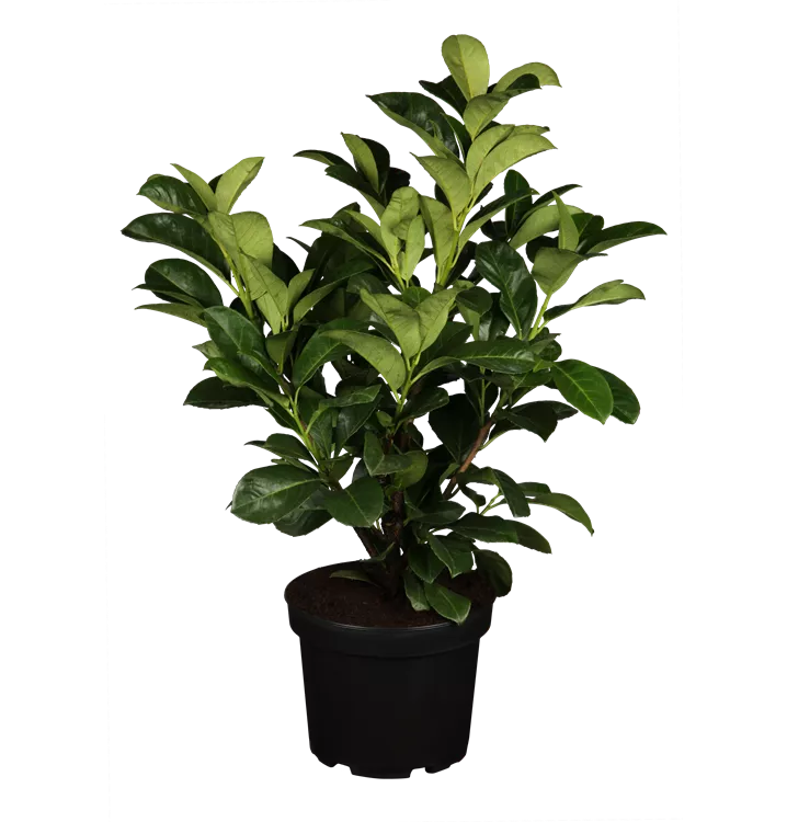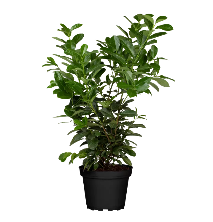 Lorbeerkirsche 'Etna'® ist ein buschig und dicht wachsender Strauch. Sie erreicht gewöhnlich eine Höhe von 2 - 2,5 m und wird ca. 0,8 - 1 m breit. In der Regel wächst sie 20 - 30 cm pro Jahr.