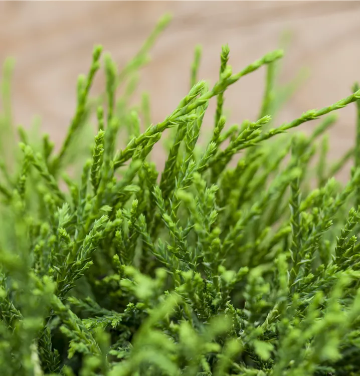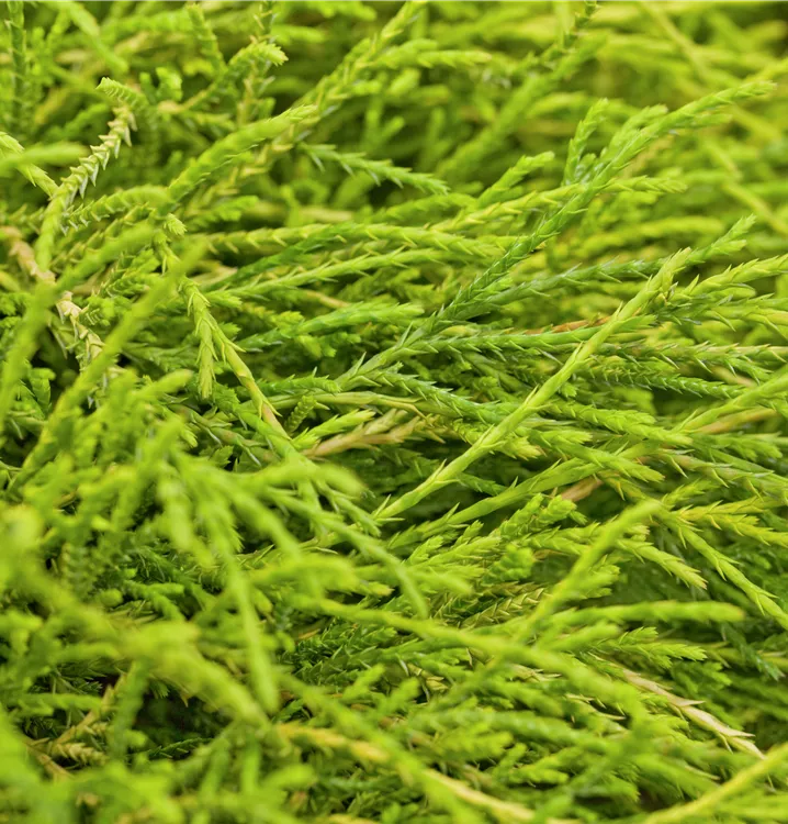 Sehr dekorativ. Die Gelbe Fadenzypresse 'Sungold' ist immergrün. Ihre Nadeln sind goldgelb, weich, schuppenförmig.
