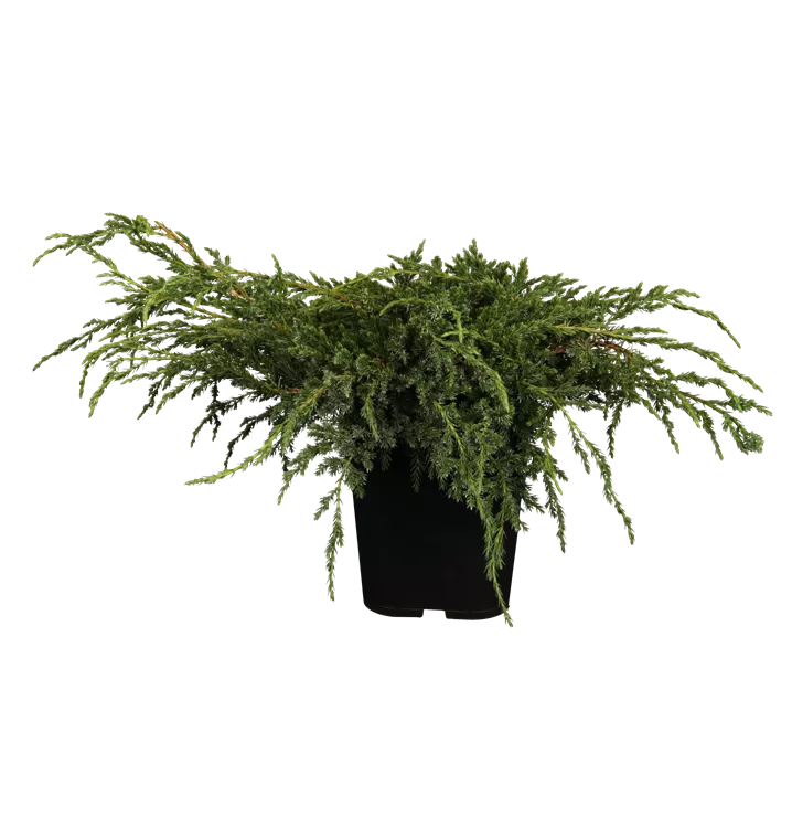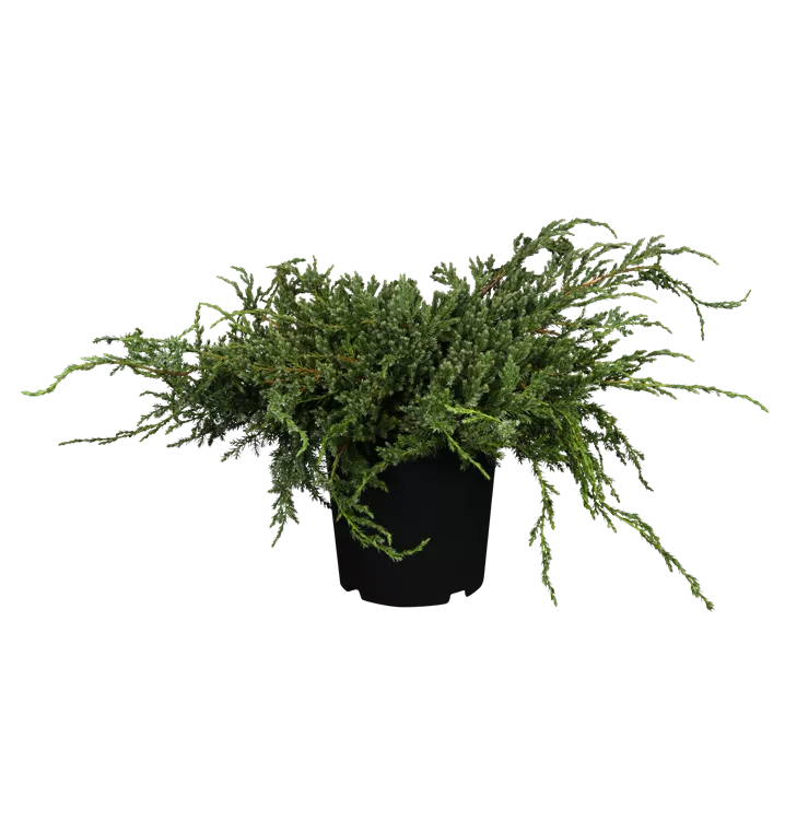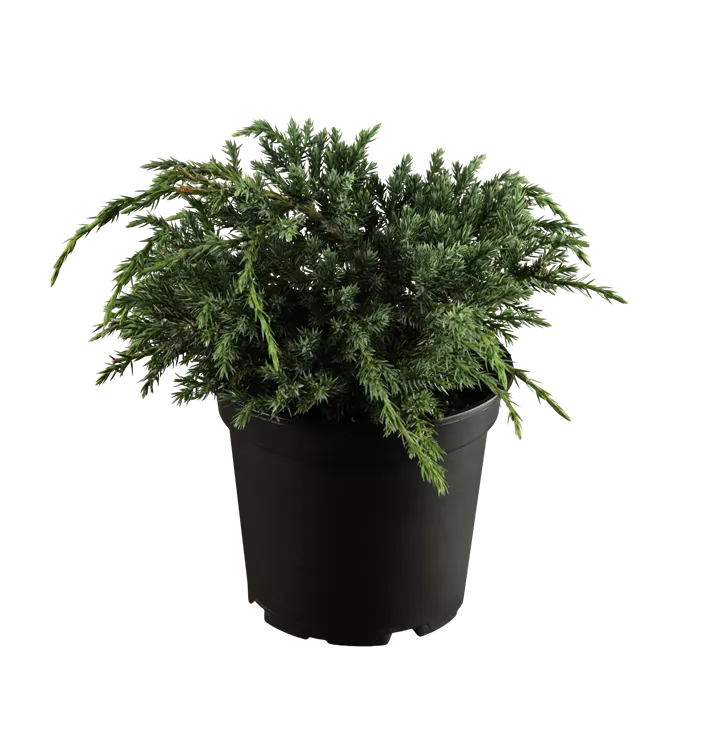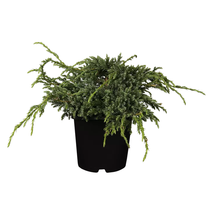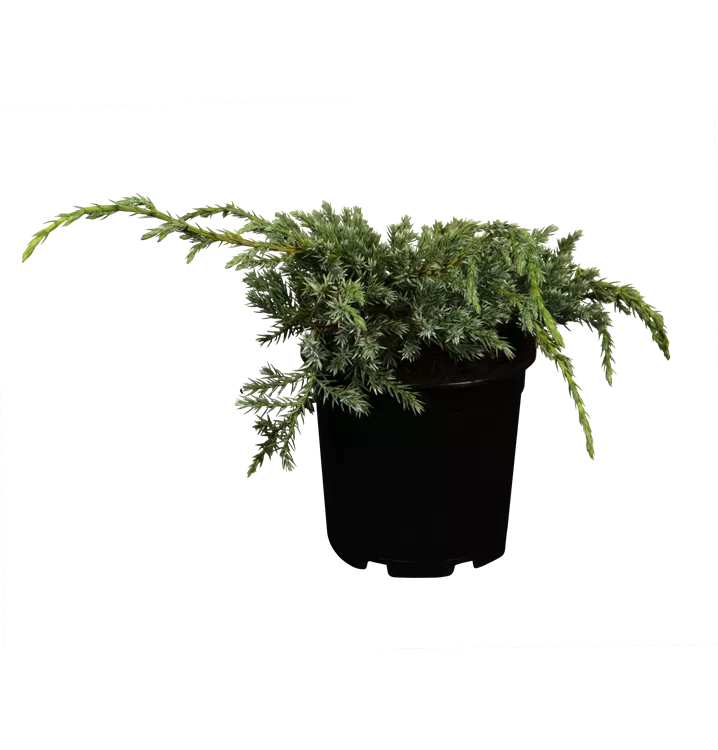 Bodenwacholder 'Blue Carpet' ist ein kriechend wachsender Zwergstrauch. Er erreicht gewöhnlich eine Höhe von 30 - 50 cm und wird ca. 1,5 - 3 m breit. Langsam wachsend. In der Regel wächst er 2 - 3 cm pro Jahr.